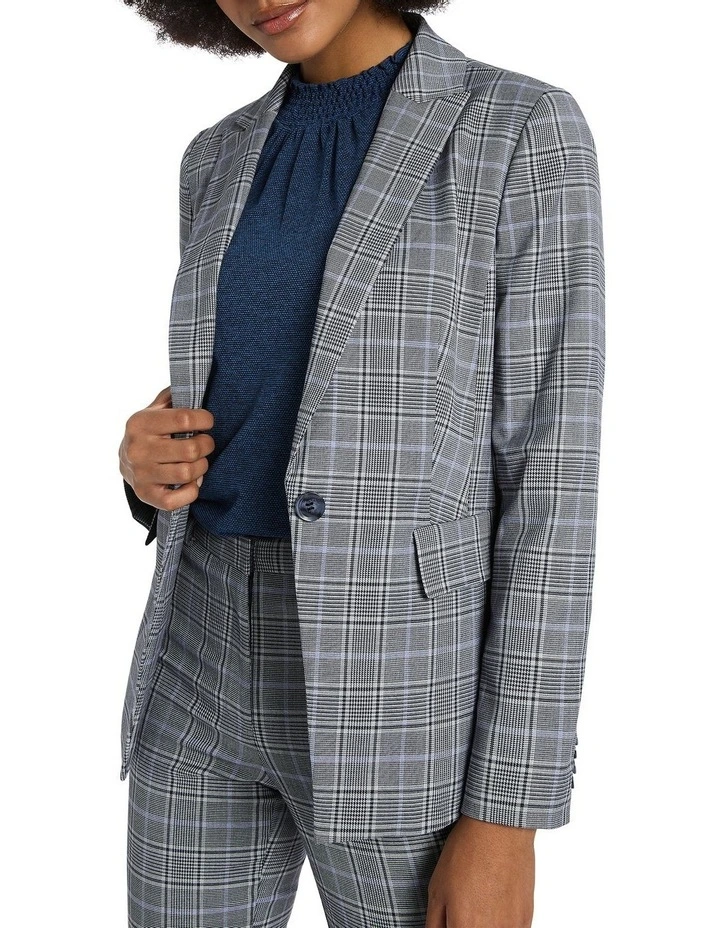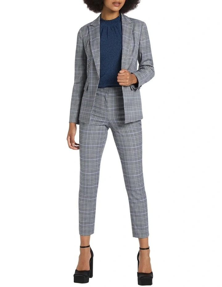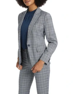 Looking sharp in a pale grey check, this single-breasted jacket has been neatly tailored to reveal blazer shaping within a slim, fitted silhouette. Fully lined, the jacket moves easily within stretch European fabric, while showing off additional detail in flap pockets at the hip, a peak lapel and collar, and a centre-back vent at the hem for movement.