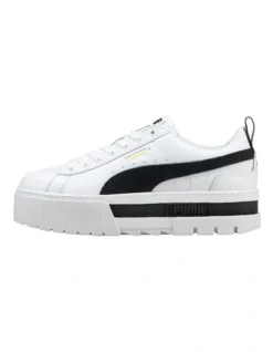 Get ready to find your style in Mayze. We made this one for the hype girls, the street enthusiasts, the trend mavens. This stand-out silhouette takes design inspiration straight from the streets, with a stacked sole and contrasting rubber tooling for an edgy, layered look. This execution features a leather upper with a suede form stripe.