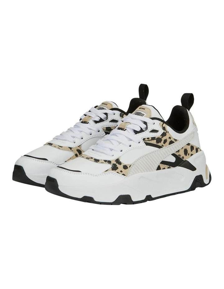 The Trinity Animal Wns is linking to PUMAs Futro aesthetic through its new interpretation of heritage inspiration with a modern twist. The upper features a mesh base with leather and synthetic stitched on overlays for a built look and feel.