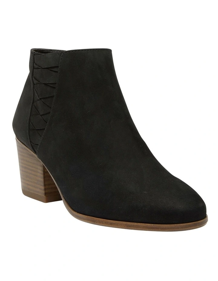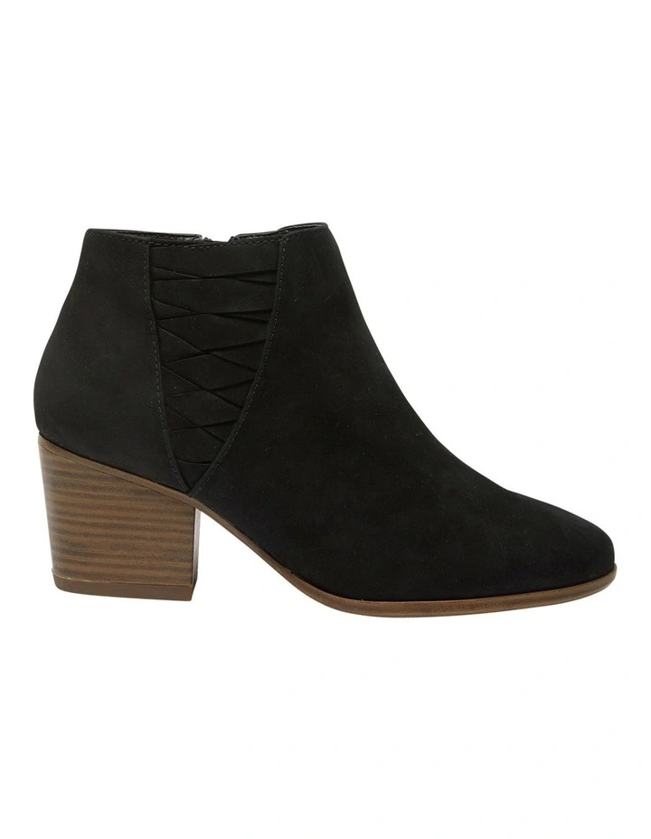 QUARRY by Sandler is a bold reimagination of the classic heeled ankle boot design. Defined by intricate zigzag detailing contoured to an argyle pattern, it is crafted from nubuck leather and embellished with an inner zip on top a slant block heel. Highlight yours under breezy dresses.Â