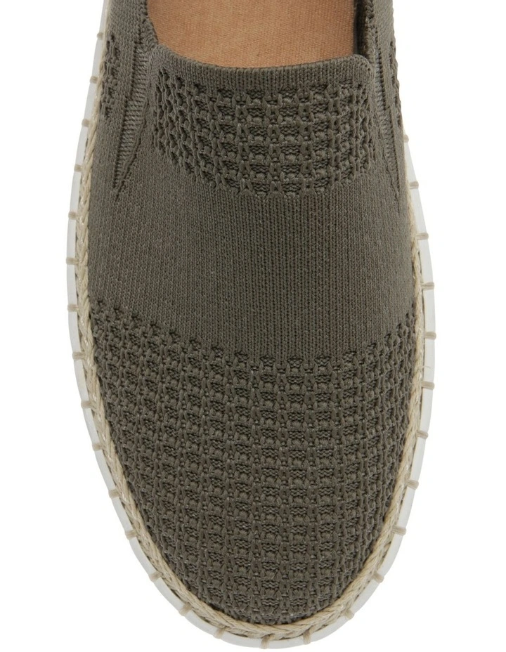 The Queen sneaker features a knitted upper with a sock like fit. Slip on style featuring espadrille stitch and 3cm platform. Â