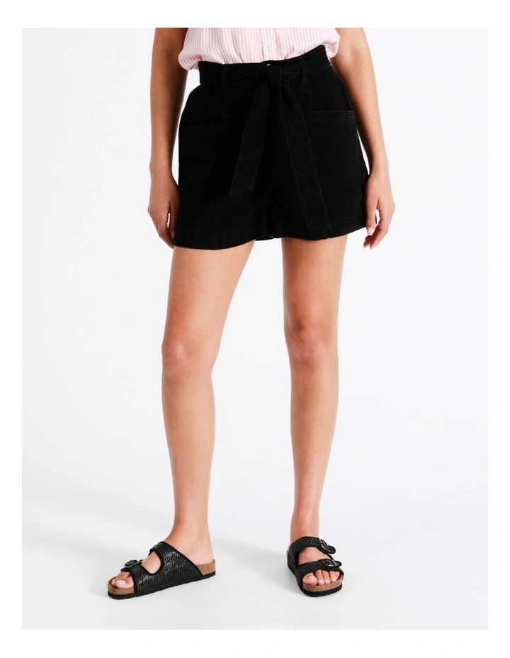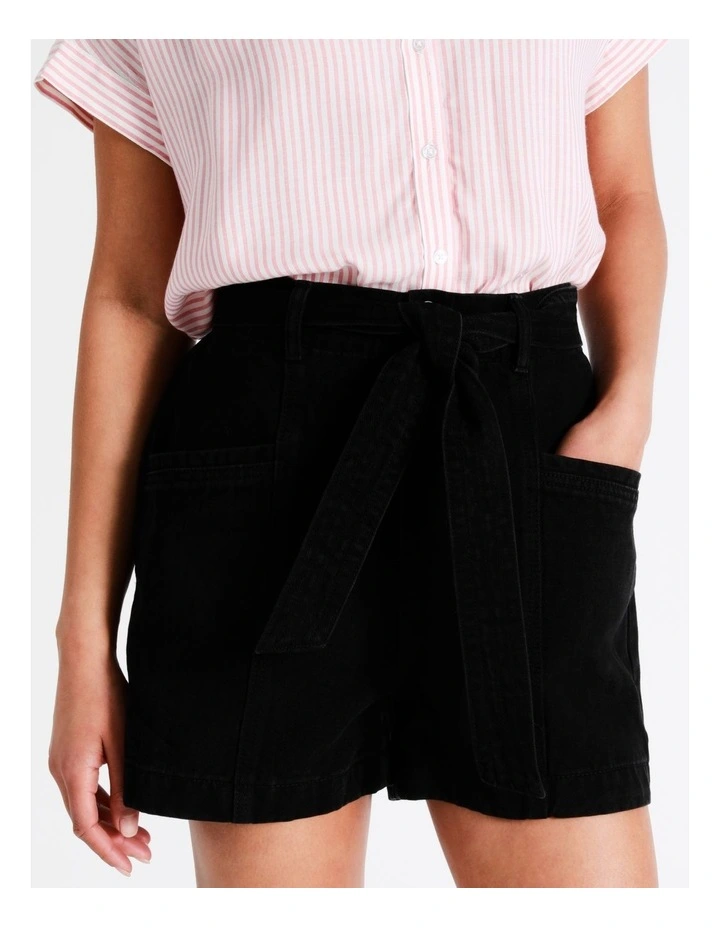 Grab Denim Recycled Blend Belted Denim Short in Black