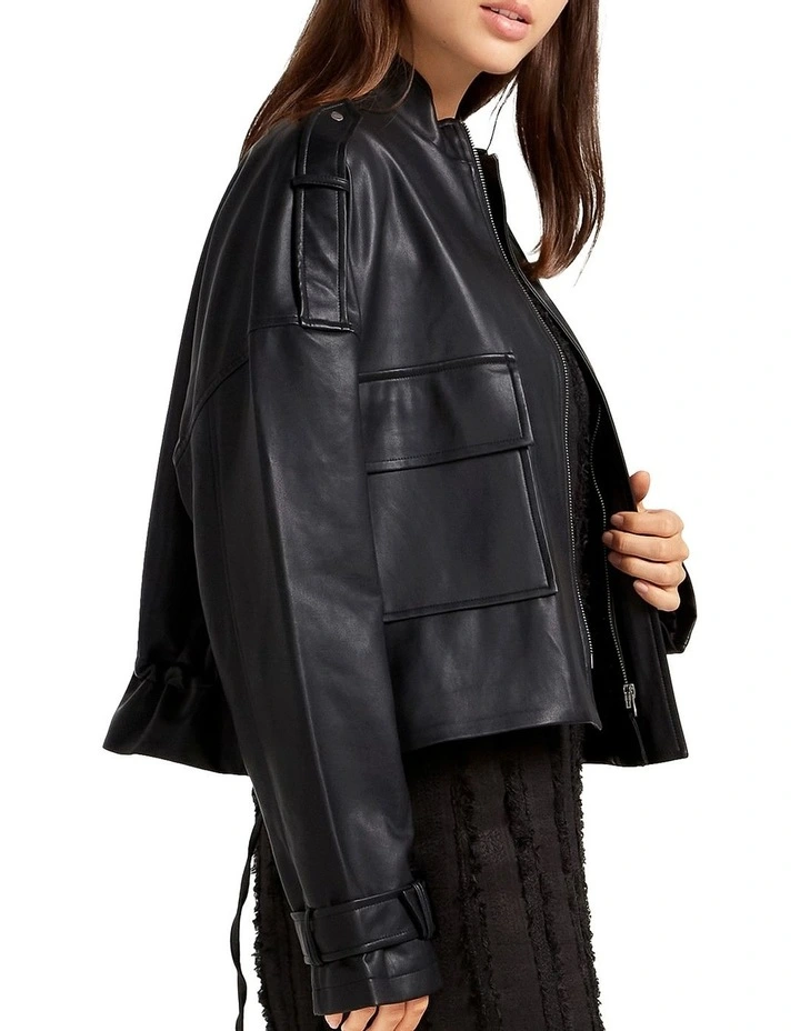 The ultimate street-style cover up wherever you go, the Reload Leather Look Jacket is the perfect pick. Oversized, with drawstring detailing at the hem, it’s designed to be worn with everything from skinny jeans to leather leggings.Â