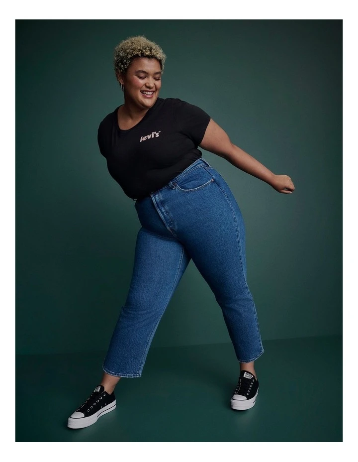 Levi’s highest high rise yet. The Ribcage Jeanwith its soaring 14-inch risehas become a hip-slimming, waist-defining, leg-lengthening obsession. With a classic straight leg for a versatile look, these jeans hit at the ankle and will show off your figure to make you feel as amazing as you look. Theyve got just enough stretch, so theyll hug and flatter your figure while keeping you comfortable throughout your day. Crafted in 14.7 ounce denim.