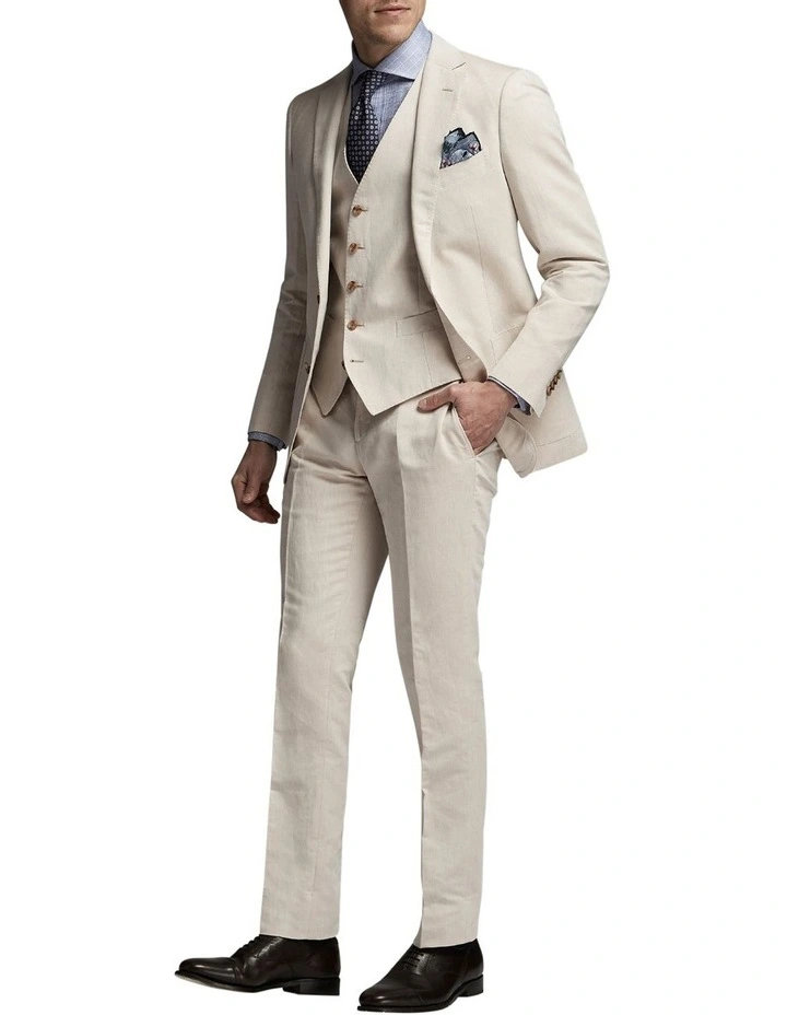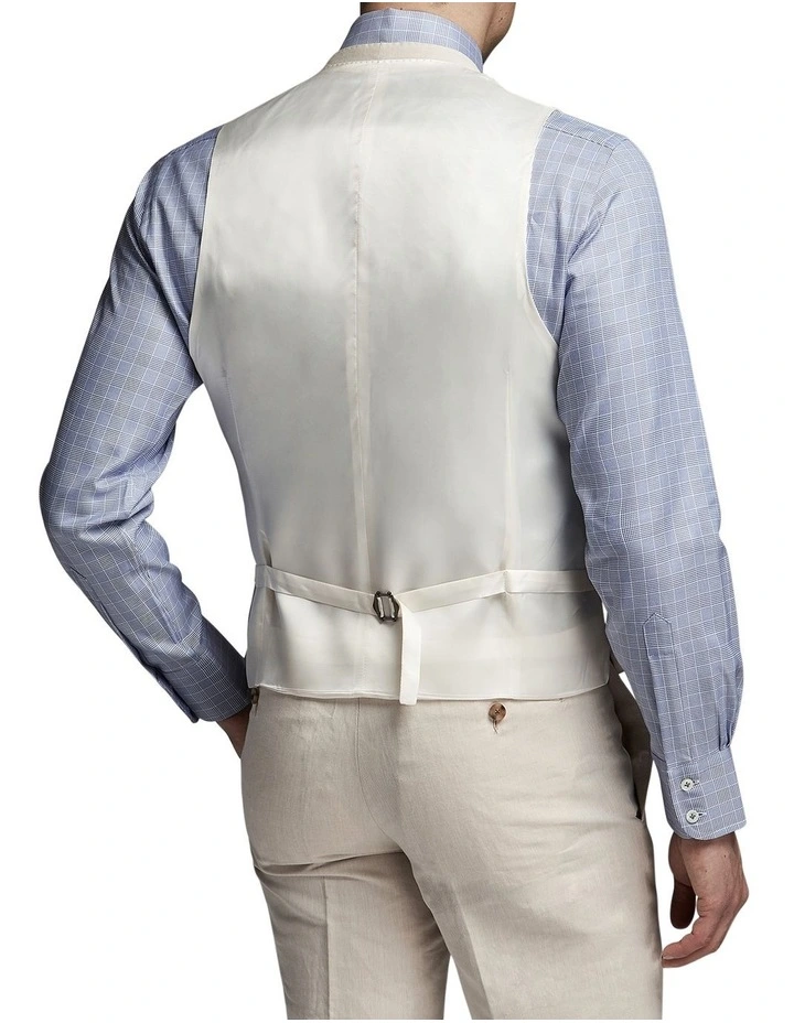 The Robertson Sand Waistcoat from M.J. Bale adds a subtle sophistication to your formal suiting. Made from a cotton-linen blend, the single-breast waistcoat features a five button closure, two front welt pockets and an adjustable back belt. Be wedding ready in the Robertson Sand Waistcoat.Â