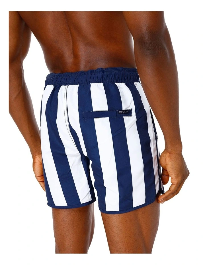 Introducing the San Diego Swimshorts in Navy Stripe by Coast Clothing! These stylish and retro shorts are perfect for any summer day, whether you’re hanging out at the beach or just cruising around town. The navy and white stripes are classic and timeless, and the curved hem gives them a unique and nostalgic look. So let’s go back to the 80’s with Coast Clothing! Made from 100% Recycled Plastic bottles.