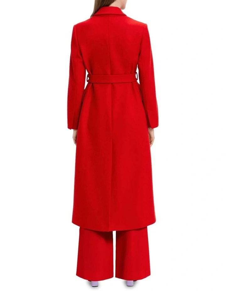 Cut from soft Italian wool felt, this coat will be a statement piece in your wardrobe. Featuring a column silhouette, self-belt and crisp tailored finishes. Pair back over any outfit for a bold modern look.