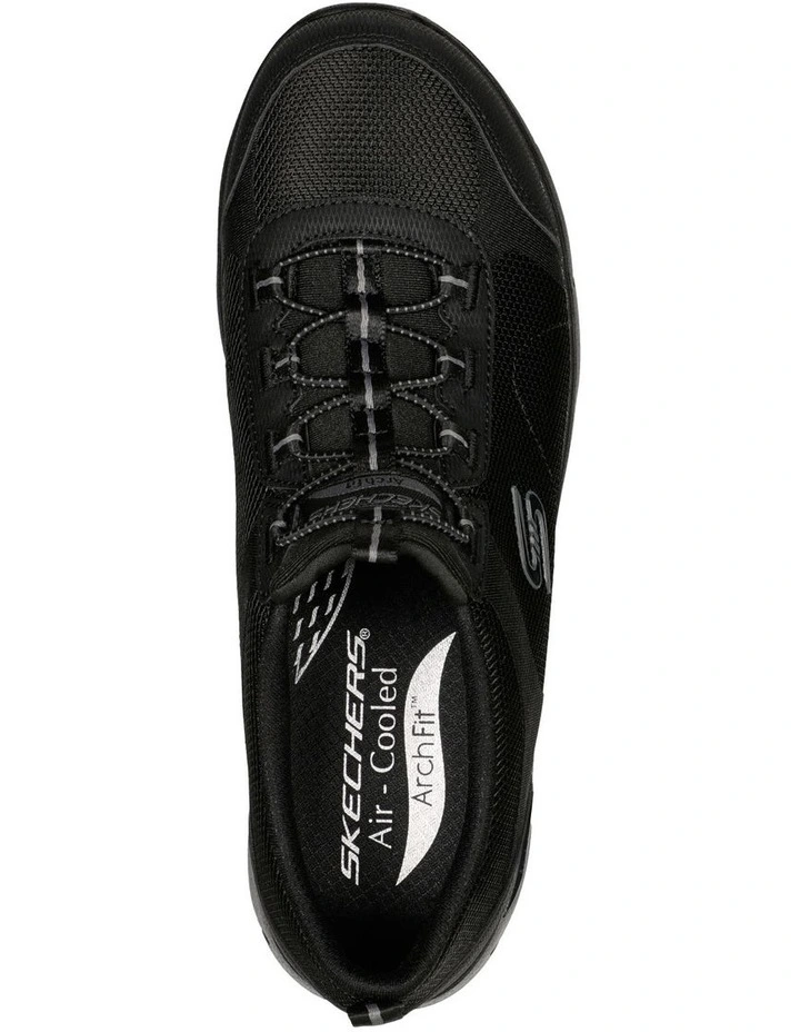 Slip on amazing supportive comfort with Skechers Arch Fit Refine. Stay true to easy wearing style and flexible comfort with smooth synthetic and textured mesh fabric upper in a slip on bungee laced sporty casual comfort sneaker with stitching accents and Air Cooled Memory Foam insole for added comfort.