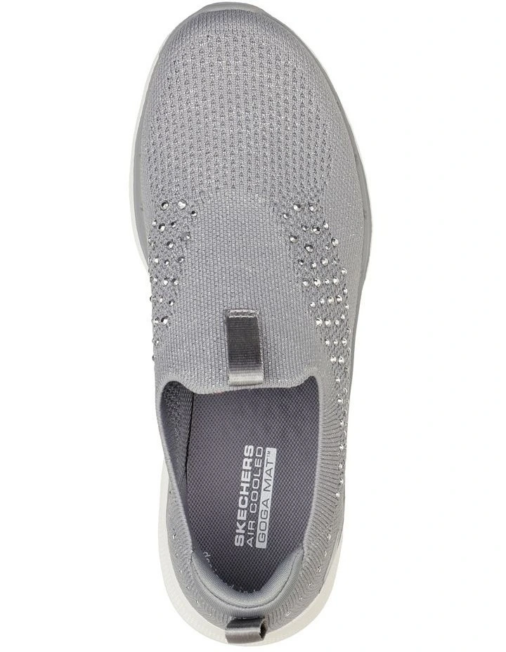 Add a little glam to your step with Skechers GO WALK 6 – Adalia. This pull-on features a sparkle Stretch Fit engineered knit upper with rhinestone embellishments, lightweight ULTRA GO cushioning, Skechers Air-Cooled Goga Mat insole and high-rebound Hyper Pillars for added support.