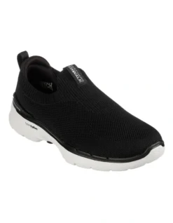 Walk in supreme comfort with Skechers GO WALK 6 – Vibrant Smile. This slip-on features a Stretch Fit engineered knit upper with sparkle detail, lightweight ULTRA GO cushioning midsole, Skechers Air-Cooled Goga Mat insole, and high-rebound Hyper Pillar Technology for added support.