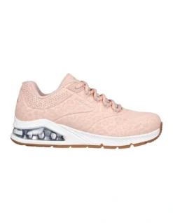 Stand out with wild style and comfort in Skechers Street Uno 2 – In-Kat-Neato. This lace-up features a synthetic durabuck upper with a tonal leopard print, a Skechers Air-Cooled Memory Foam insole, and a visible Skech-Air midsole.