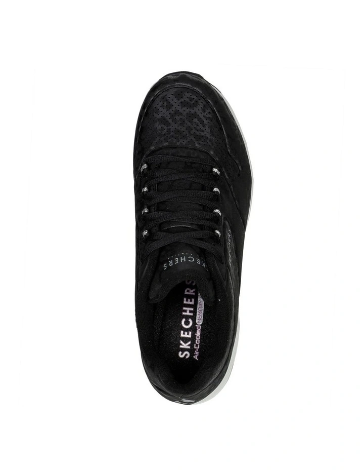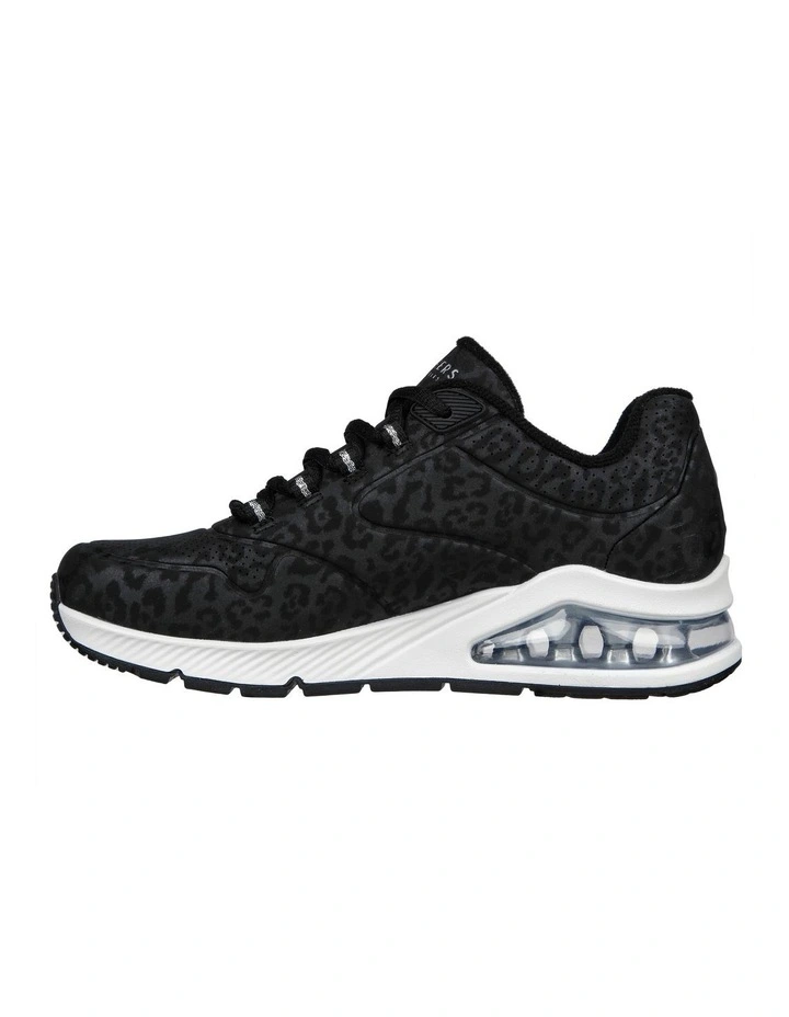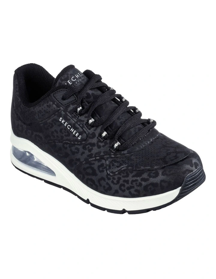 Stand out with wild style and comfort in Skechers Street Uno 2 – In-Kat-Neato. This lace-up features a synthetic durabuck upper with a tonal leopard print, a Skechers Air-Cooled Memory Foam insole, and a visible Skech-Air midsole.