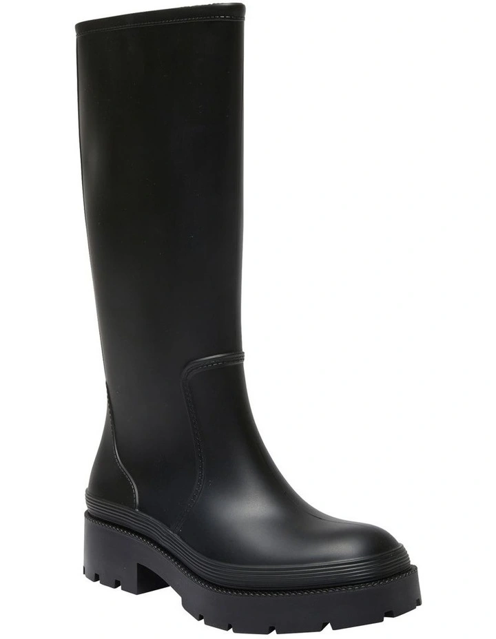 Combining chic and functionality, THUNDER by Ravella is a sleek gumboot hitting just below the knees. With a smooth finish, it features a square toe on top a slight heel and lug sole. Complete the cosy silhouette by styling yours underneath short pieces.Â