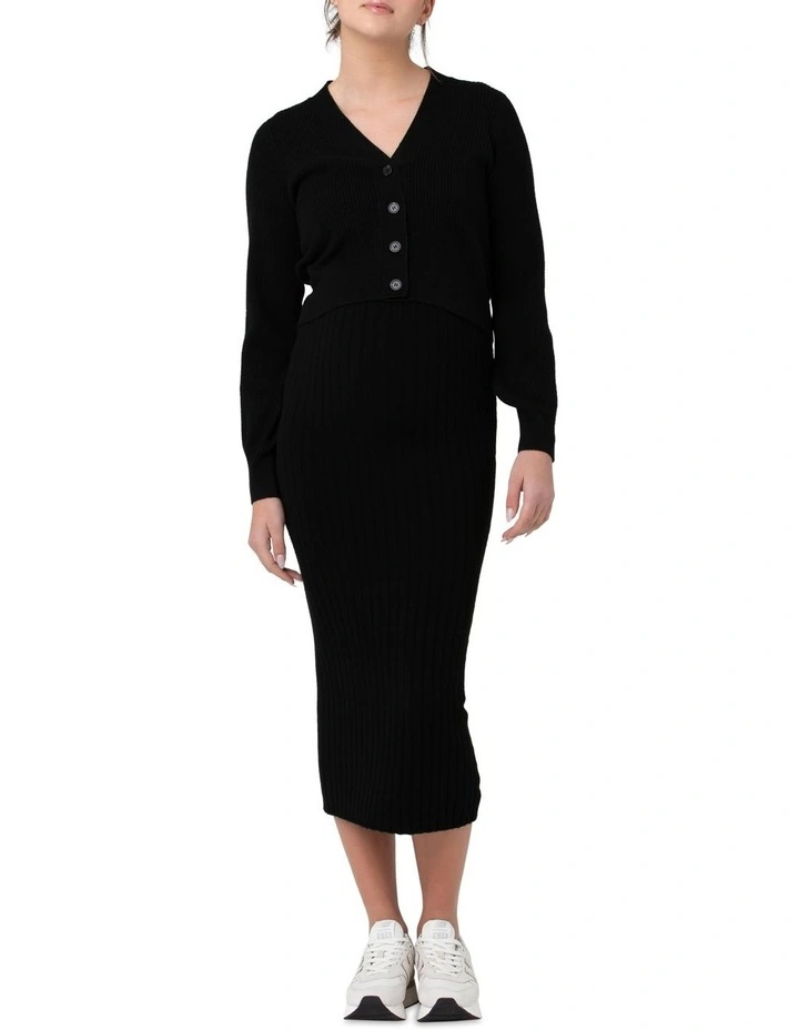 Meet the cute cropped cardi that will layer easily over almost any outfit. The Tiffany Crop Knit Cardi is knitted in a cosy, soft yarn and pairs perfectly with the matching Faye Rib Knit Dress.