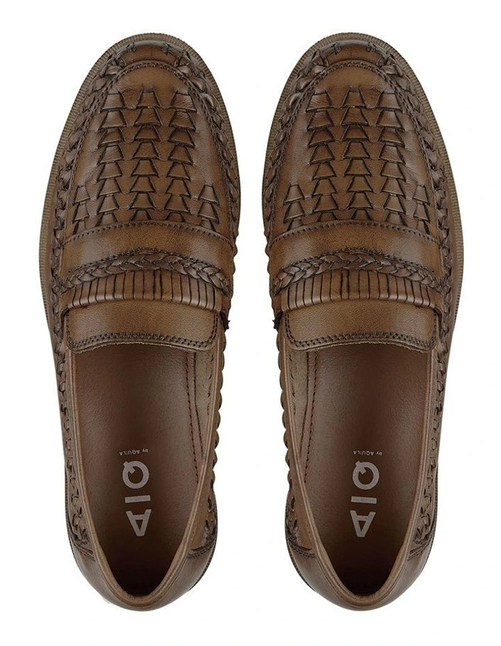 Here at Aquila, we are known for our modern designs, and the Trey is a perfect example. If youre looking to spruce up your warm weather wardrobe, this casual shoe is for you. The Trey features a woven look leather upper, a blonde sole for contrast and an easy slip-on structure. Match the Trey with your favourite pair of shorts and invisible socks, and finish with a woven belt.
