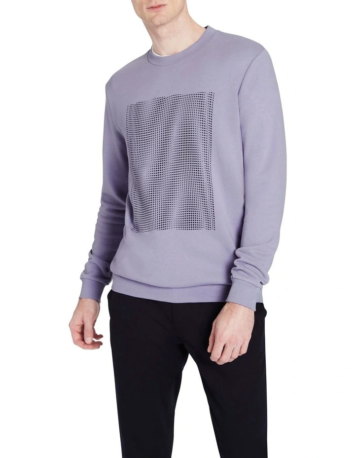 Entirely captivating, this effortless sweatshirt draws the eye to its optical illusion placement print, while remaining oh-so easy to wear thanks to its rich lilac hue. Super soft against the skin, the sweatshirt is made from pure, breathable cotton, which works to create a relaxed fit with neat crew shaping at the neck, finished with soft rib trim at the cuffs, hem and neckline.