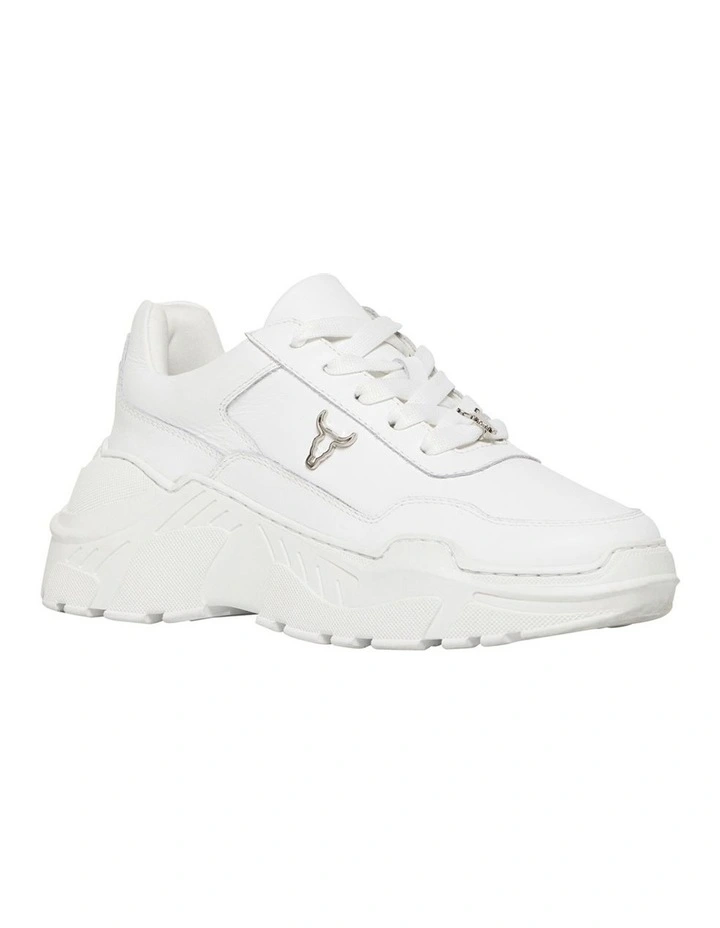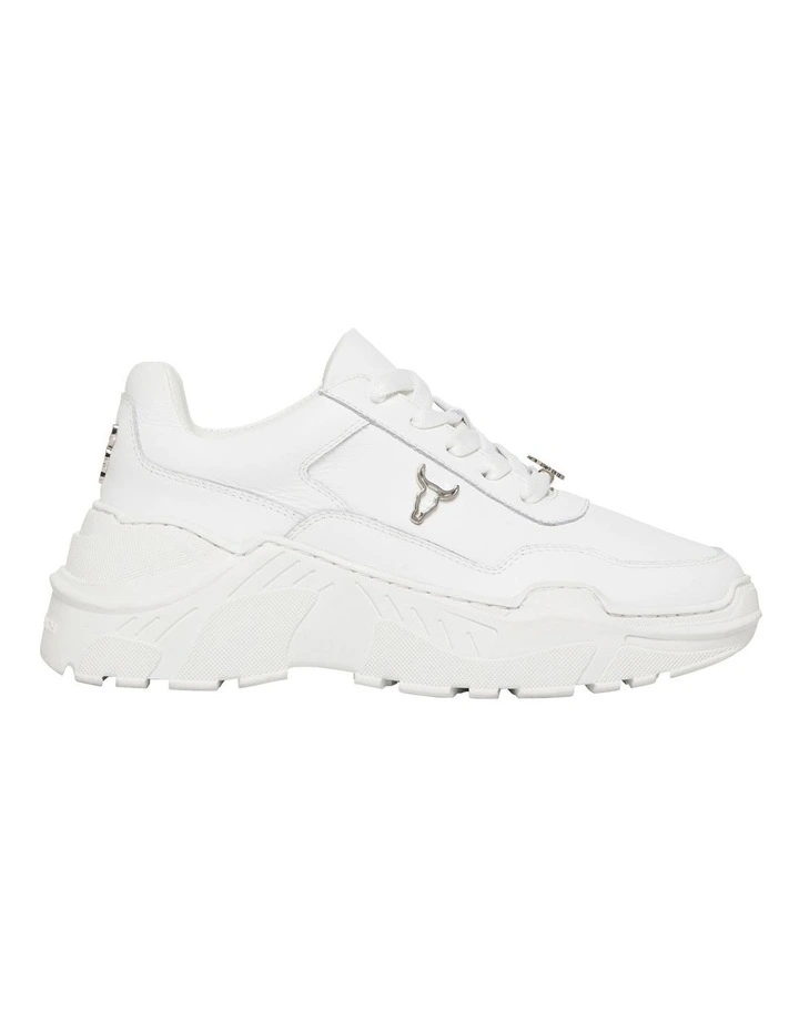 Windsor Smith Carte White Sneaker. Leather upper lace up sneaker. Lace up fastening. Bull head logo branding. Patterned sole.