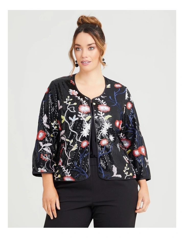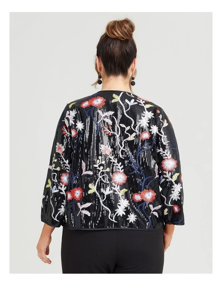 Make a statement with the Zinnia Embroidered Sequin Jacket for your next special occasion! This stunning sequin jacket features embroidery detail, hook and eye front closure and fully lined and edged with a stretch satin for comfort. Perfect to wear with a black dress or layered over a tank and wide-leg pants for a glamorous look! Measures: 124cm long from centre back neck to hemline on a size 14. Fit Guide: Regular fit. See size guide for help determining your best fit.